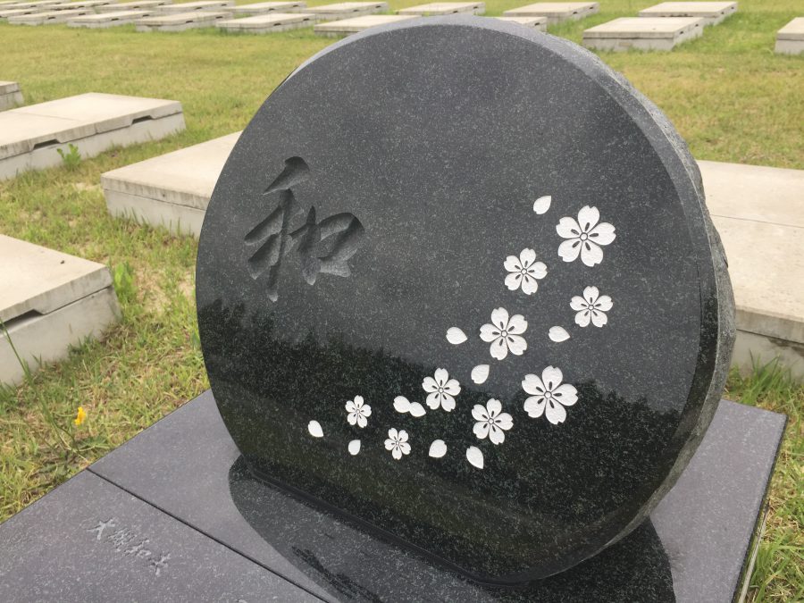 花などの彫刻への着色は慎重にお勧めしています。ただ単純に目立つように、という目的ではあまり着色することはありません。なぜ着色をしたいのか の理由を伺うようにしています。装飾としての着色は最近の手法で、間違った選択をするとせっかくのお墓の上品さが損なわれる危険があるからです。